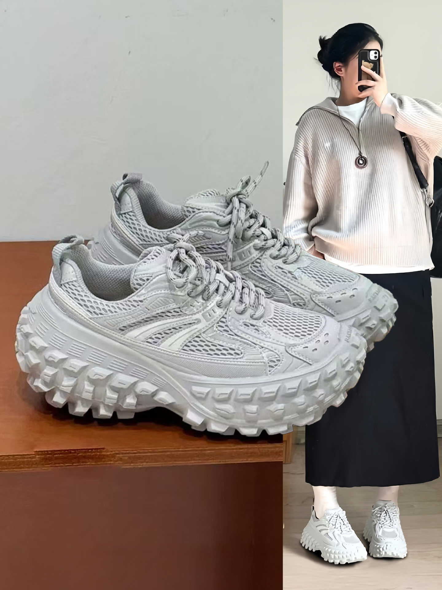 Hong Kong Versatile Paris-Style Thick-Soled Height-Increasing Dad Shoes for Women 2025 Spring and Autumn New Genuine Leather Mesh Casual Sneakers Trendy