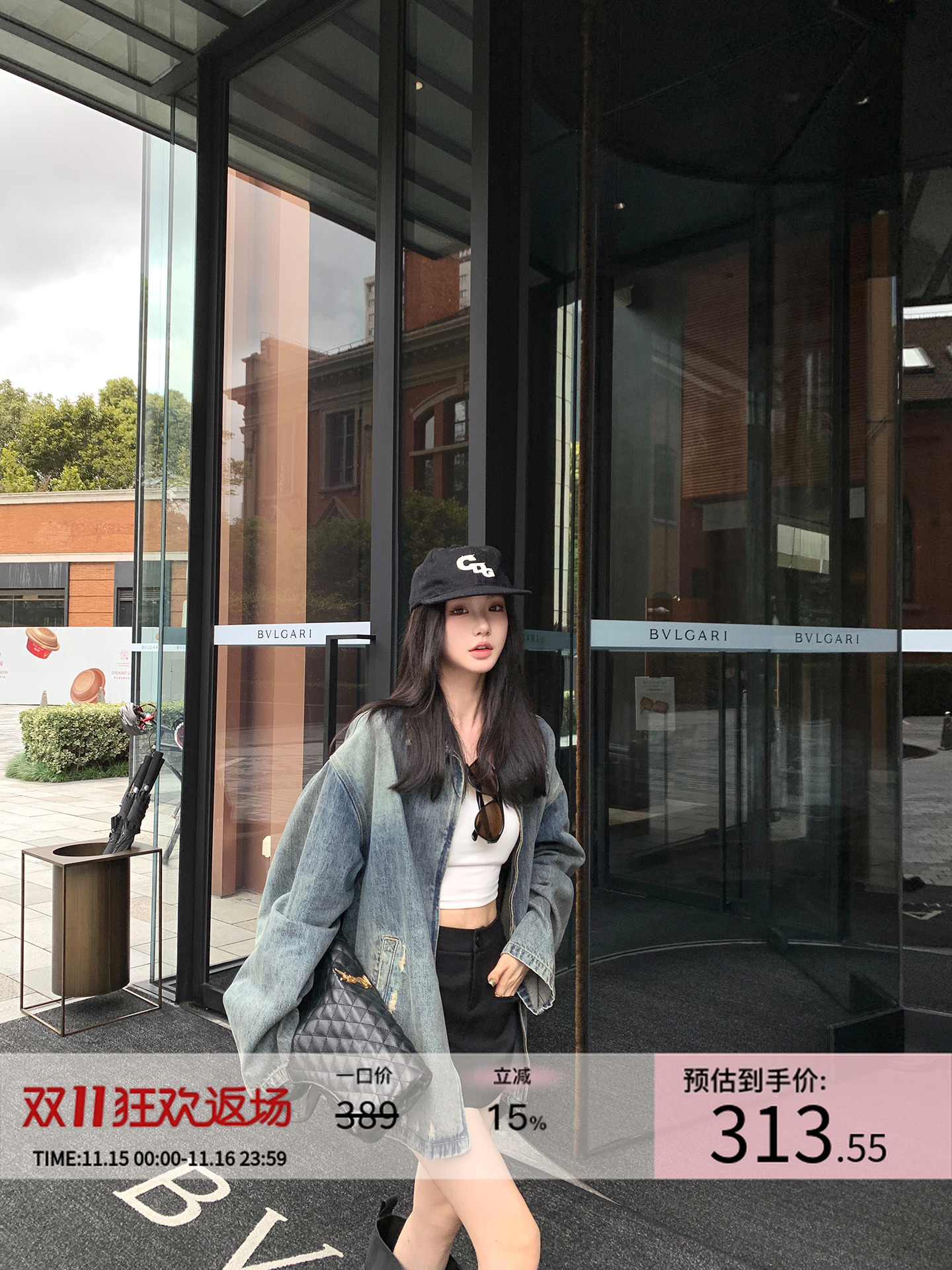 Ariseism American Retro Detachable Fur Collar Little Devil Hooded Sweatshirt Jacket Women's Autumn Short Top
