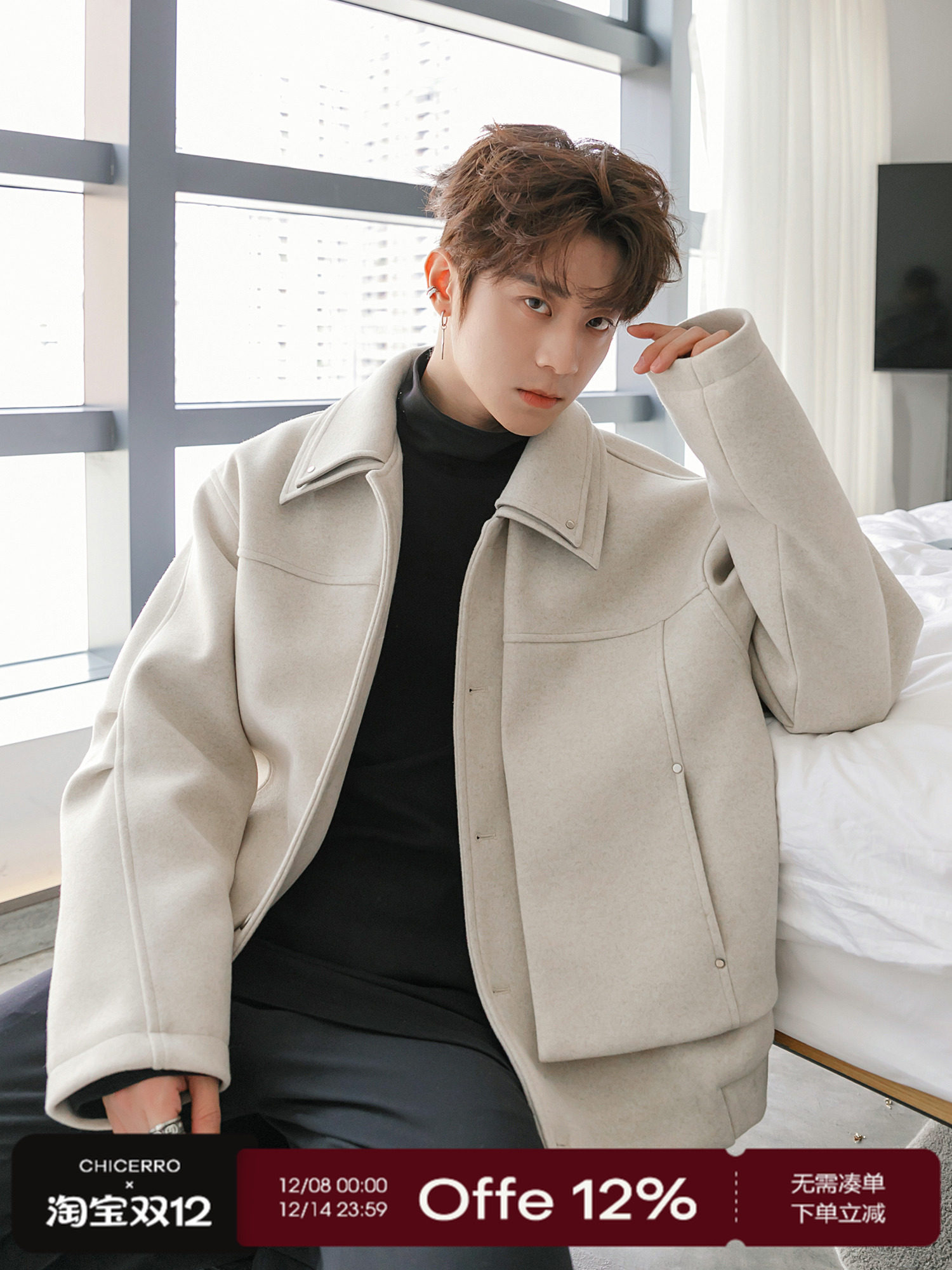 Chicerro Sicilian Men's Winter Woolen Jacket Korean Style Fake Two-Piece High-End Woolen Coat for Men