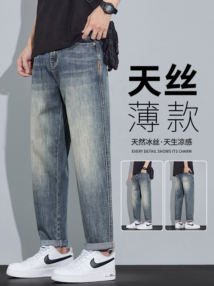 American Retro Jeans for Men 2025 Spring and Autumn Trendy Brand Loose Straight Elastic Men's Washed Casual Pants