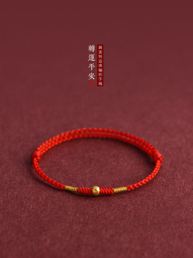 999 Pure Gold Transfer Beads Red String Bracelet Anklet for Men and Women, Gold Pure Gold Small Gold Beads for the Year of Birth, Woven Bracelet