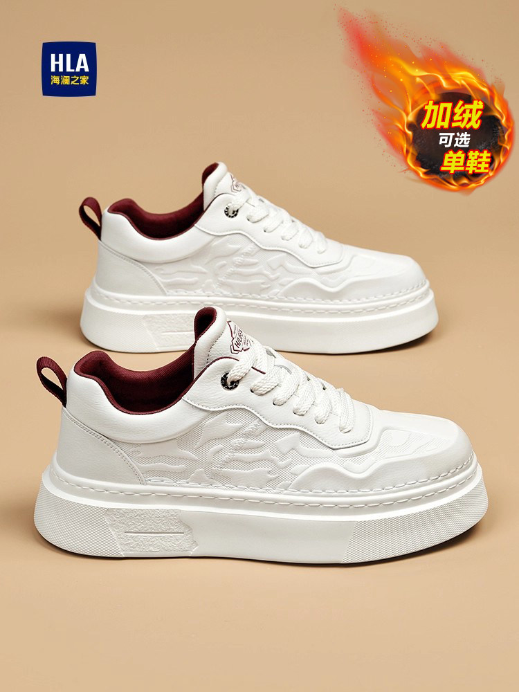 Heilan Home Men's Shoes 2025 New Autumn and Winter Fleece-Lined Casual Leather Surface Cotton Sneakers Men's Thick-Soled Height-Increasing White Shoes