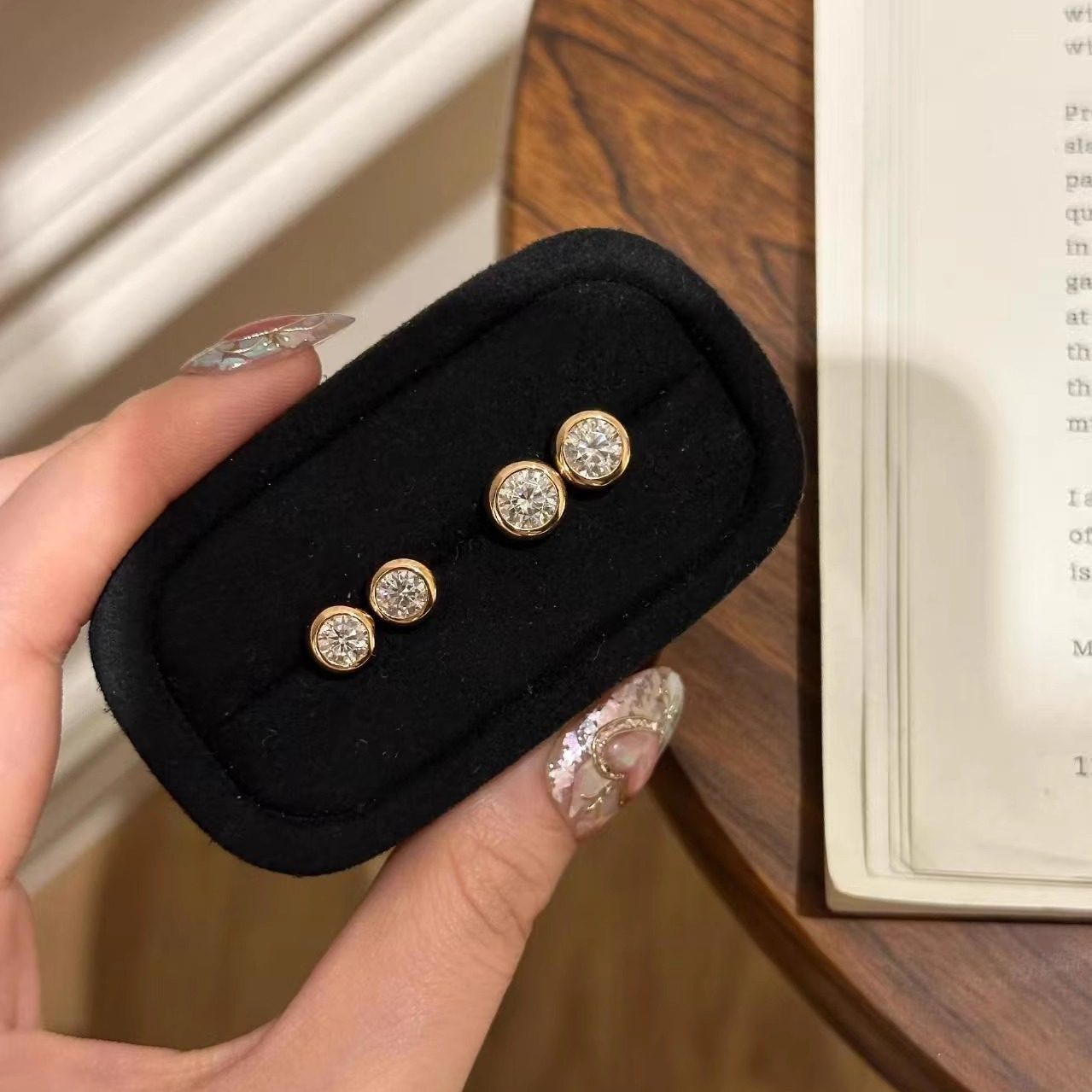 Bubble Moissanite Single Diamond Stud Earrings for Women, 925 Silver Plated with 18K Rose Gold, Imitation Diamond 50-Point Screw-Back Earrings