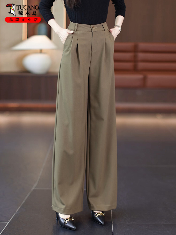 Woodpecker Brand Wide-Leg Pants for Women, 2025 Autumn New High-Waisted Drape Suit Pants, Fashionable Long Pants, Wide-Leg Autumn Women's Pants