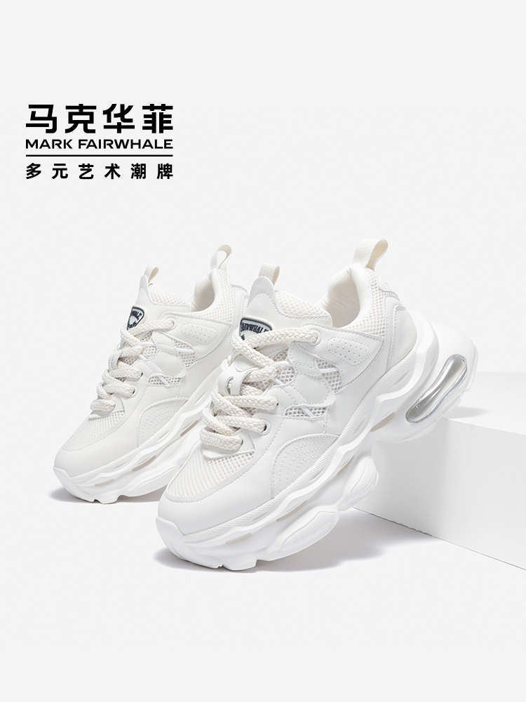 Mark Huafei Men's Shoes 2025 New Model Genuine Leather White Versatile Breathable Mesh Air-Cushion Casual Shoes Height-Increasing Dad Shoes