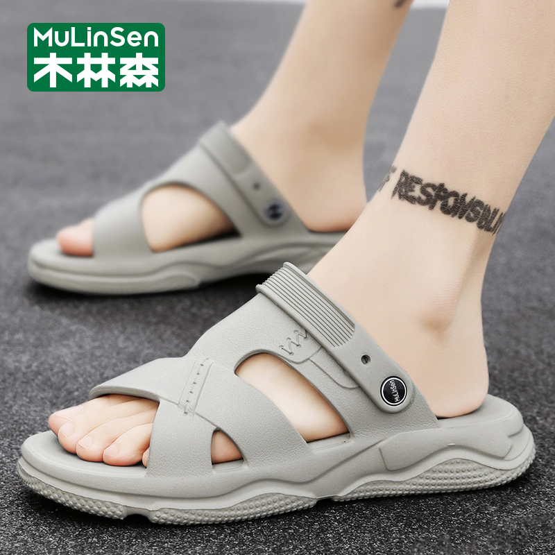 Mulinsen Men's Summer Slippers for Outdoor Wear and Driving, Dual-Use Casual Sandals with Soft Soles, Outdoor Sports Non-Slip Flip-Flops