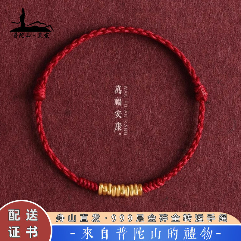 Putuo Mountain Pure Gold Broken Gold Red String Bracelet for Men and Women, Zodiac Year Safety Gold Fortune Handmade Braided Bracelet