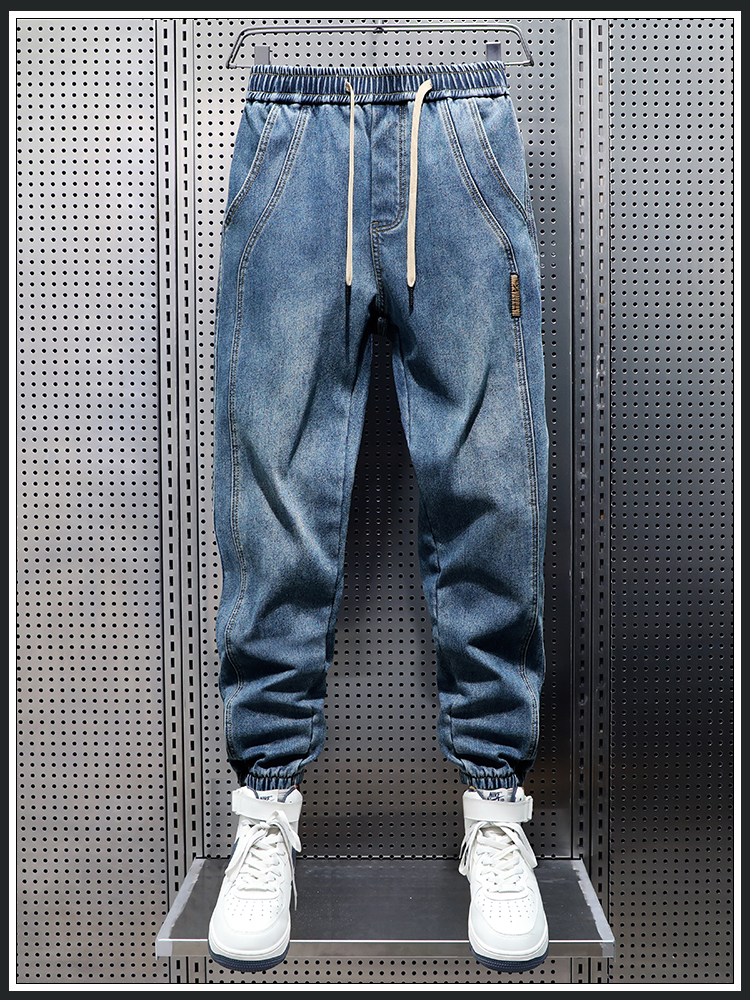 Aopai Shark Jogger Jeans for Men 2025 New Long Pants Men's American Style Harem Autumn and Winter Fleece-Lined Thickened Casual Pants