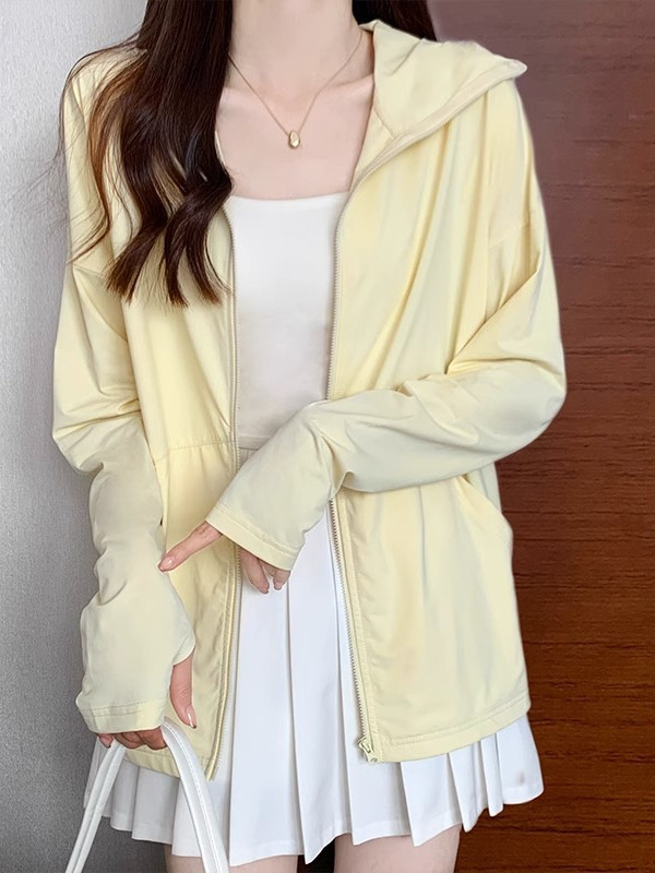 Cream-Colored Sun Protection Clothing for Women, 2025 New Style, Loose-Fitting, Ice Silk, Breathable, Versatile, Thin Cardigan, Sun Protection Jacket, Outerwear