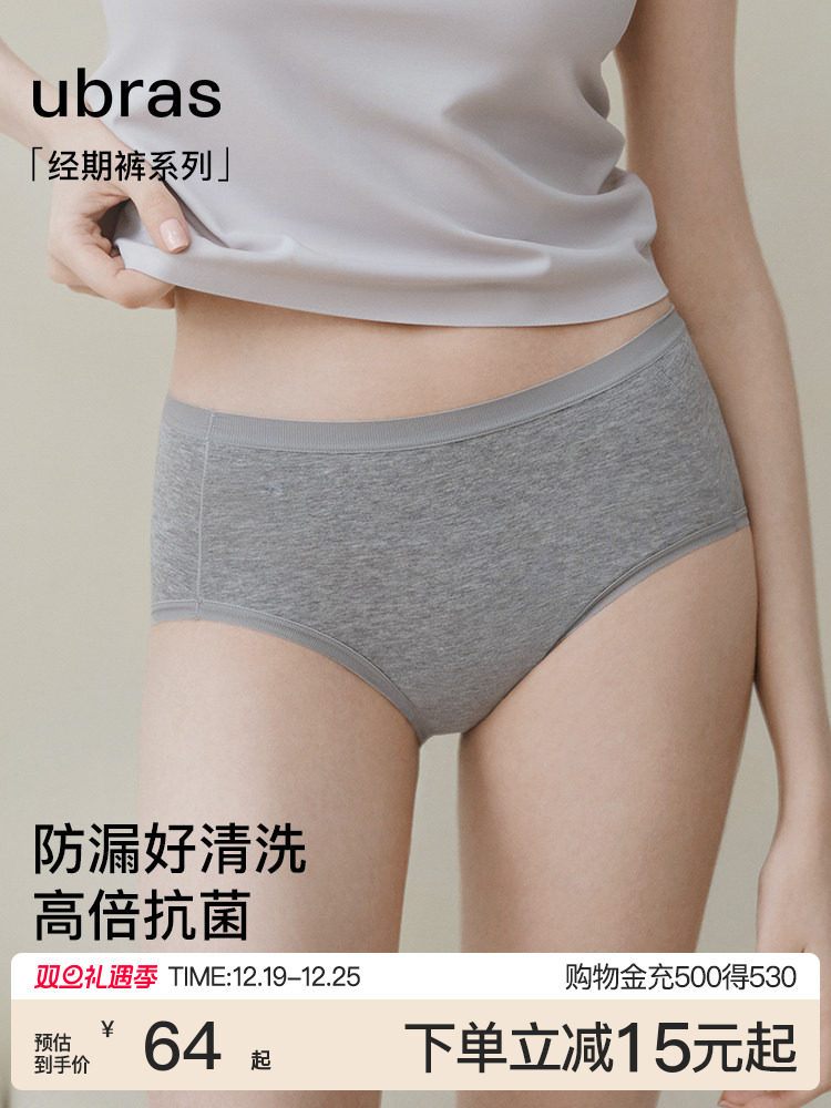 Ubras Menstrual Underwear for Women, Leak-Proof, Mid-High Waist, Pure Cotton, 7A Antibacterial Crotch, Special Sanitary Pants for the Menstrual Period