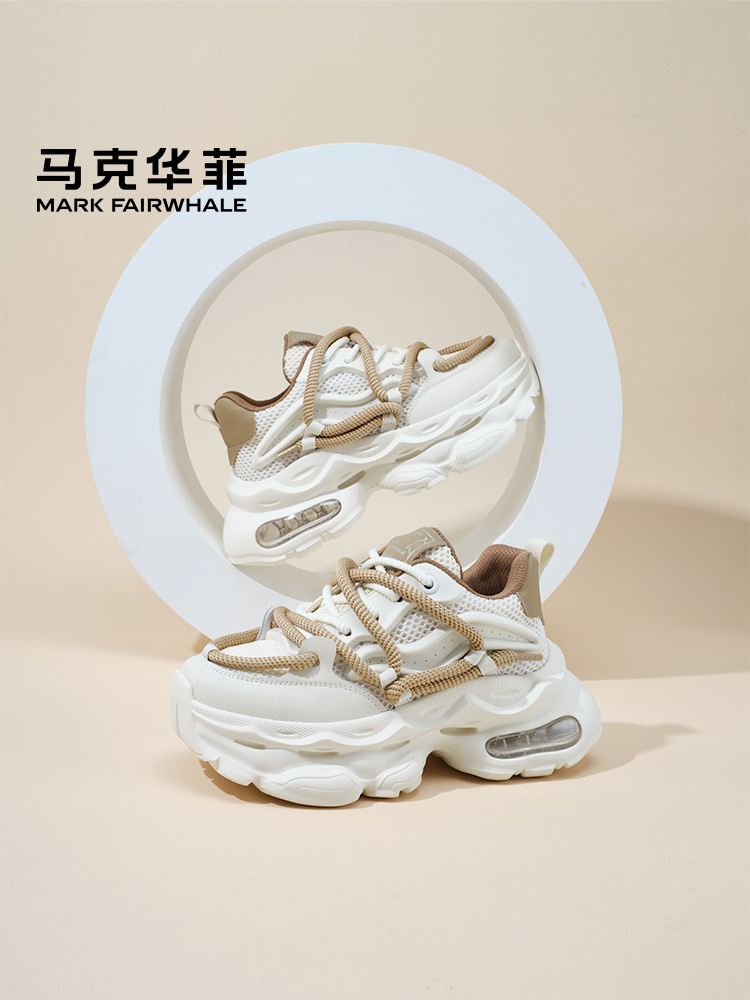 Mark Huafei Men's Shoes, Autumn Breathable 2025 New Model, Genuine Leather Air-Cushion Height-Increasing Dad Shoes, Men's Sports Casual Shoes