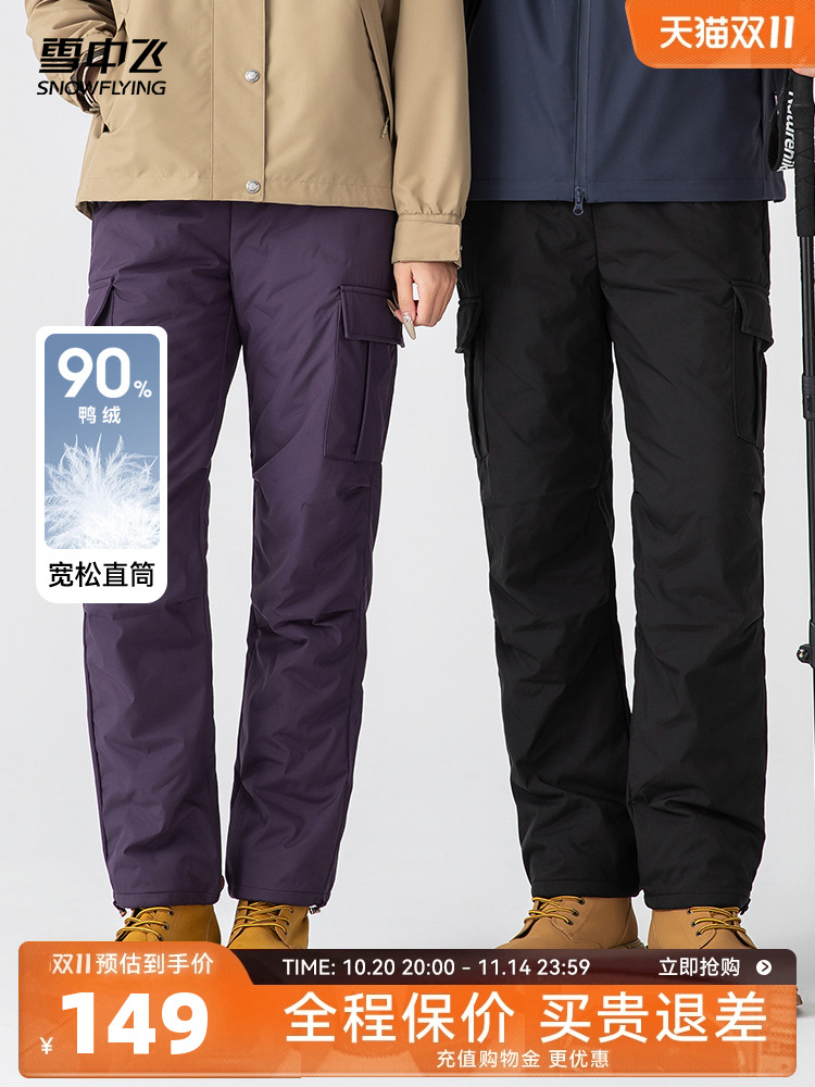 Xuezhongfei 2025 Winter New Style Unisex down Pants Workwear Outdoor Travel High Waist Elastic Large Pockets Cold-Resistant Thick