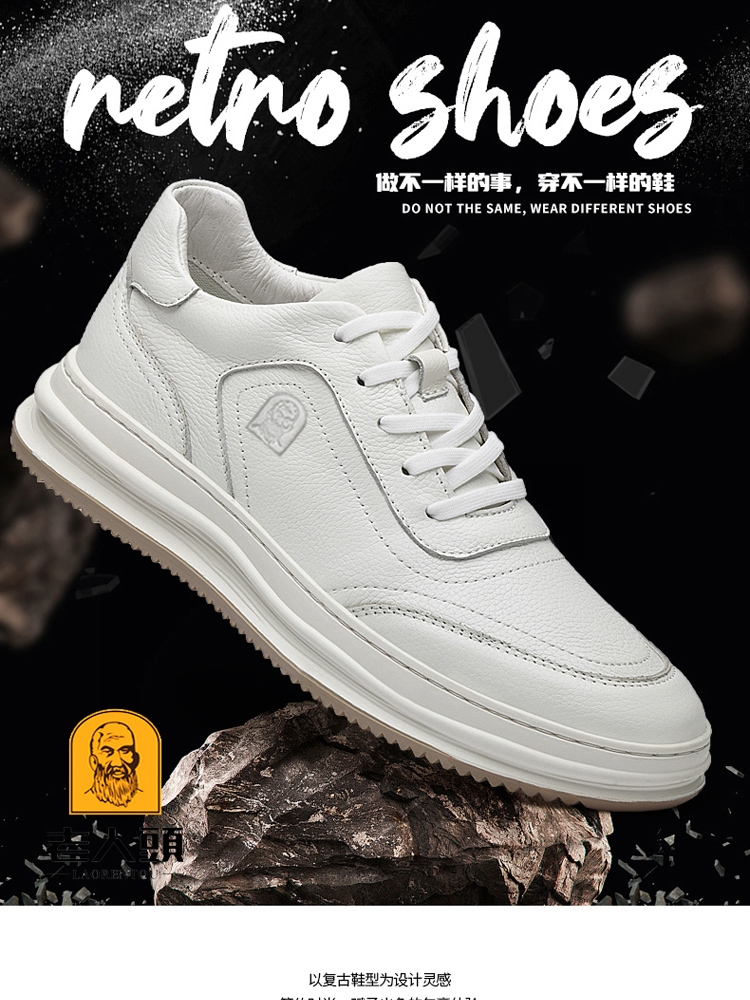 Old Man's Head Men's Shoes Spring New Genuine Leather White Shoes Men's Sports Casual Shoes Soft Surface Soft Sole First Layer Cowhide Sneakers