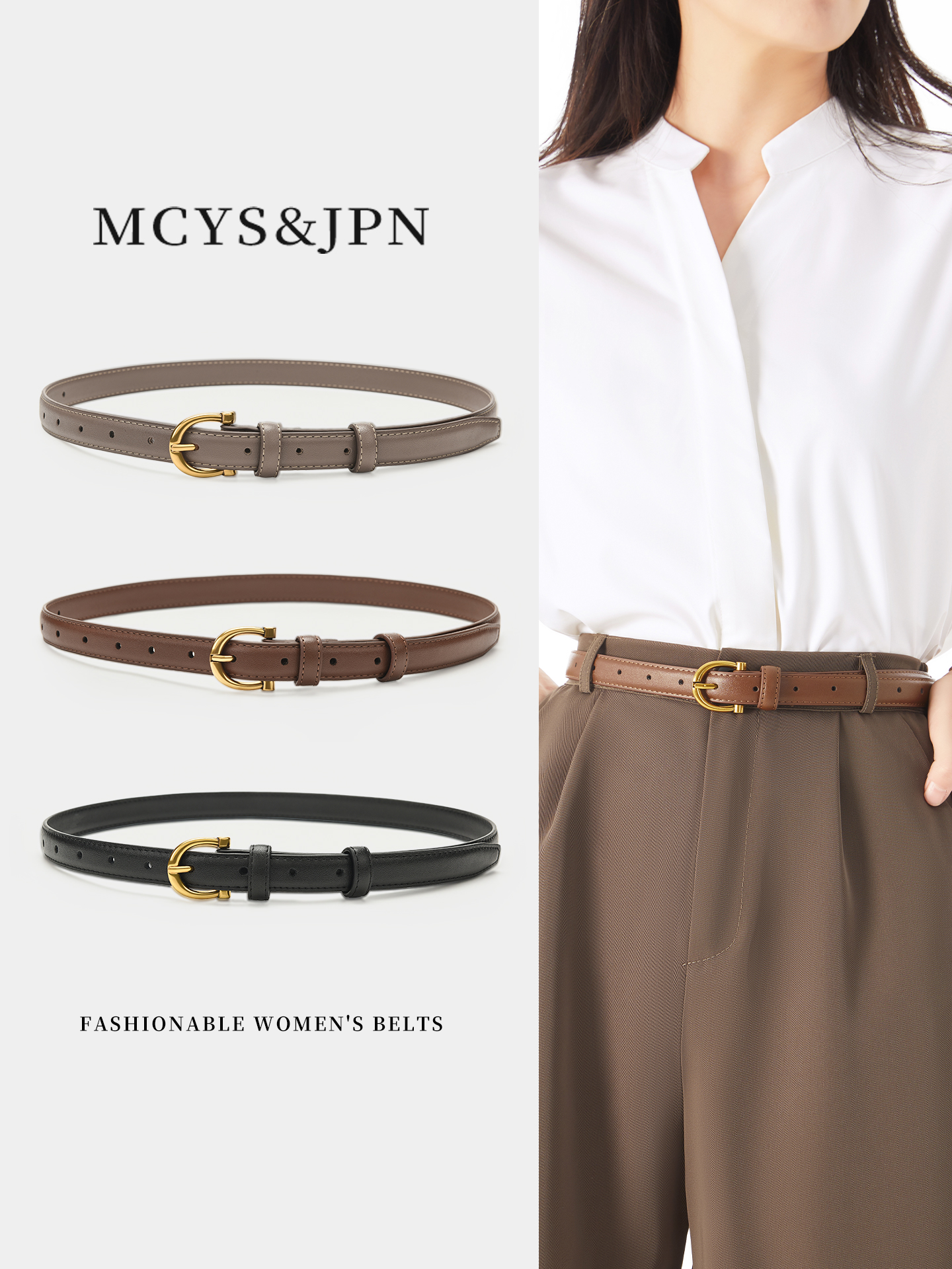 Vintage Thin Belt for Women 2025 New Design Niche Casual Ladies Elastic Buckle Caramel Color Belt
