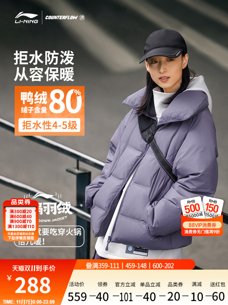 Li-Ning Outdoor Cf Short down Jacket for Women, Autumn and Winter, Turn-Down Collar, Duck Down, Windproof, Thickened, Warm Sportswear