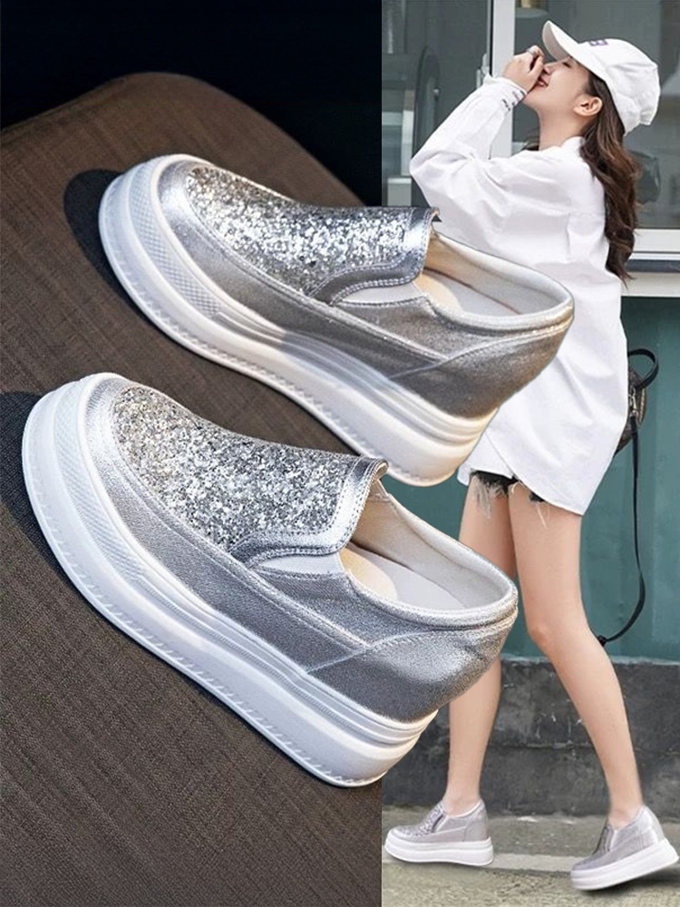 Hong Kong Thick-Soled Shiny Genuine Leather Platform Shoes for Women 2025 Summer New Style Petite Slip-On Height-Increasing Casual Sneakers