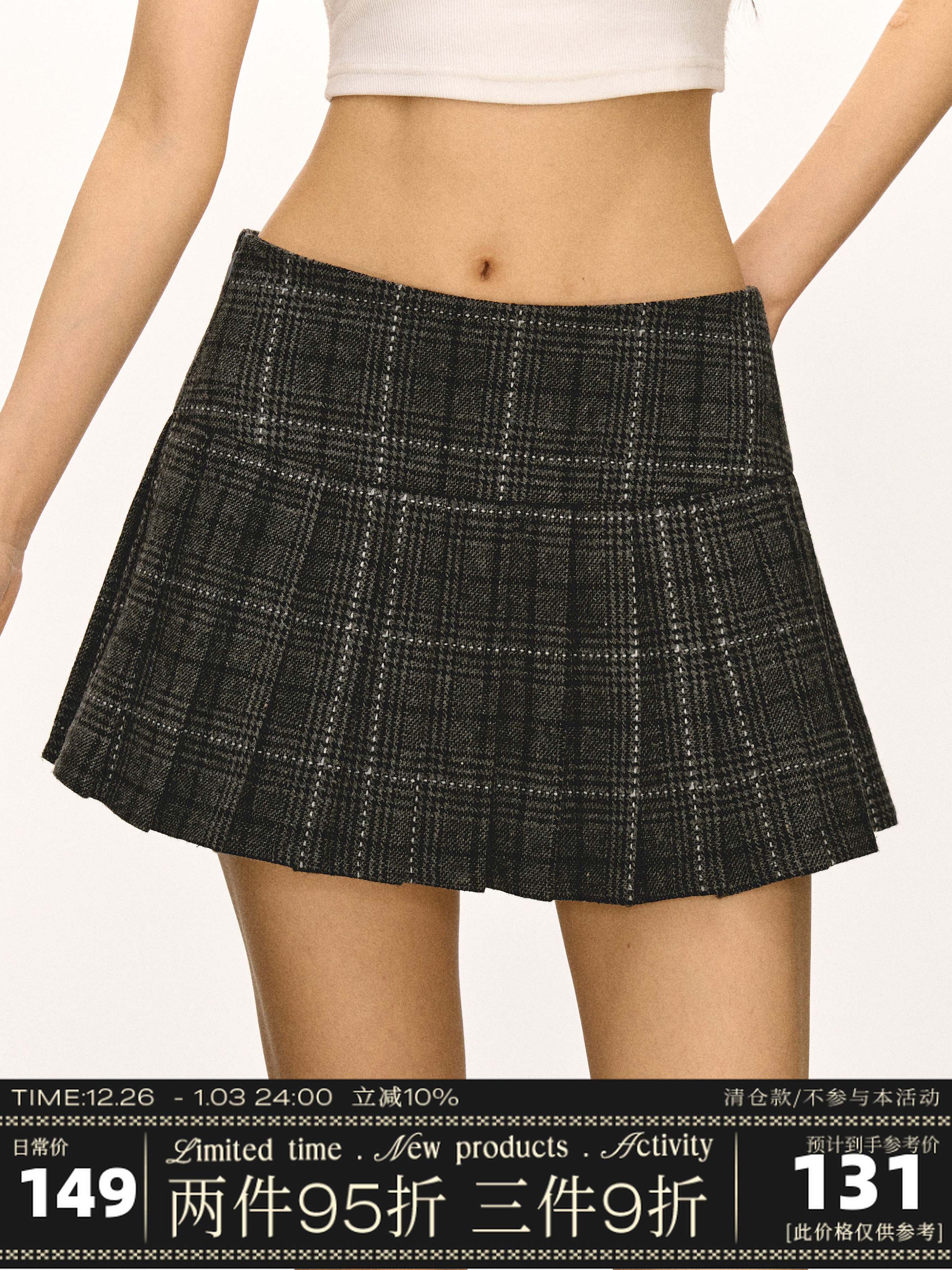Ariseism American Retro Gray Plaid Suit Skirt Women's Skirt Autumn and Winter New Pleated Skirt