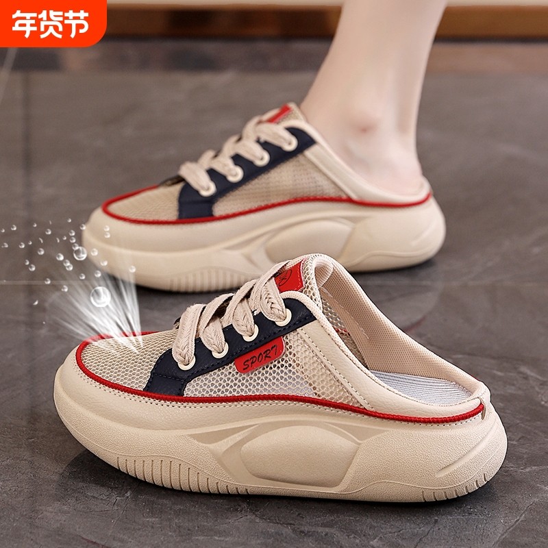 Women's Shoes That Don'T Tire the Feet, Mesh Summer Slippers for Pregnant Women, Closed-Toe Outdoor Wear, Thick-Soled Breathable Half-Slippers Sandals