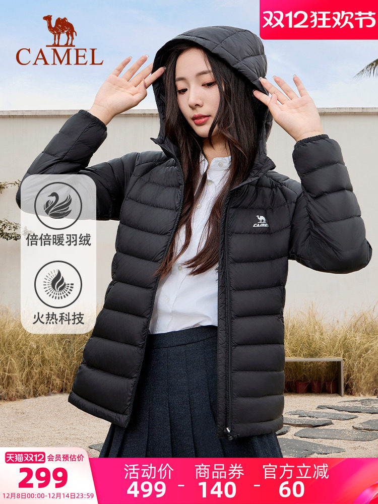 Camel Sports down Jacket for Women, Lightweight 2024 Autumn/Winter New Style, Warm Inner Layer, Hooded Casual down Jacket Coat