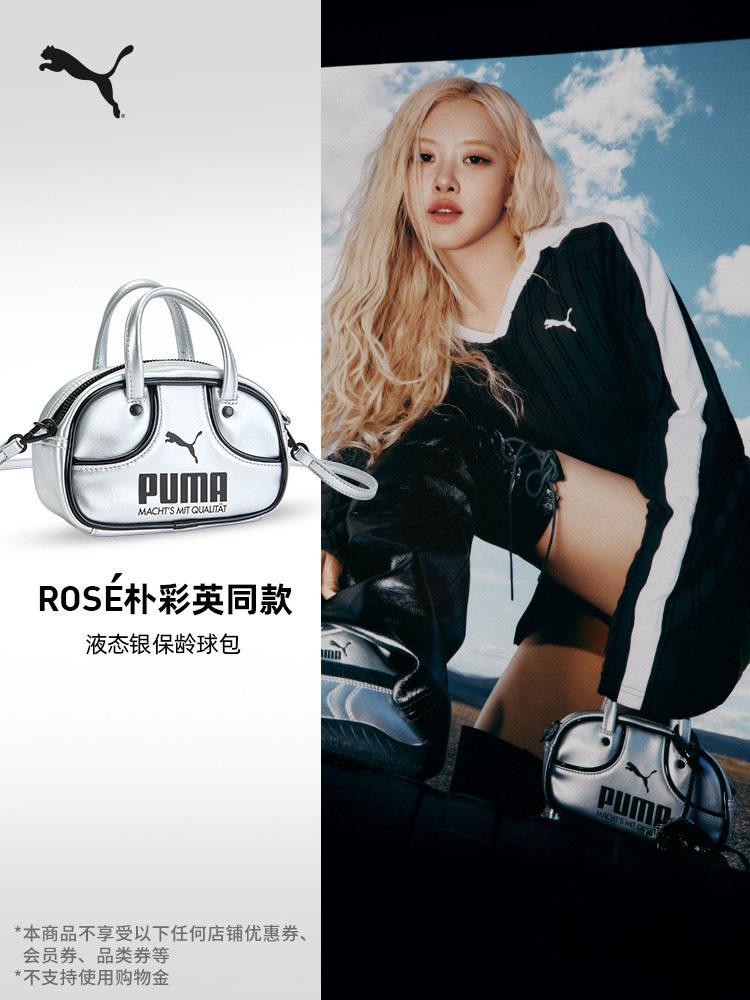 Rose Park Chae Young's Same Style Liquid Silver Bowling Bag Handbag Puma Trendy Shoulder Bag 092485