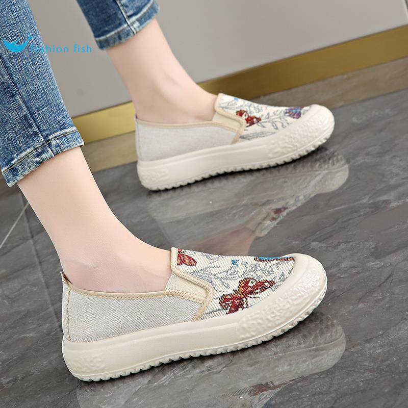 Old Beijing Cloth Shoes for Women soft sole Mom Shoes Slip-On Casual Shoes Summer Travel Shoes Soft-Soled Loafers Canvas Shoes