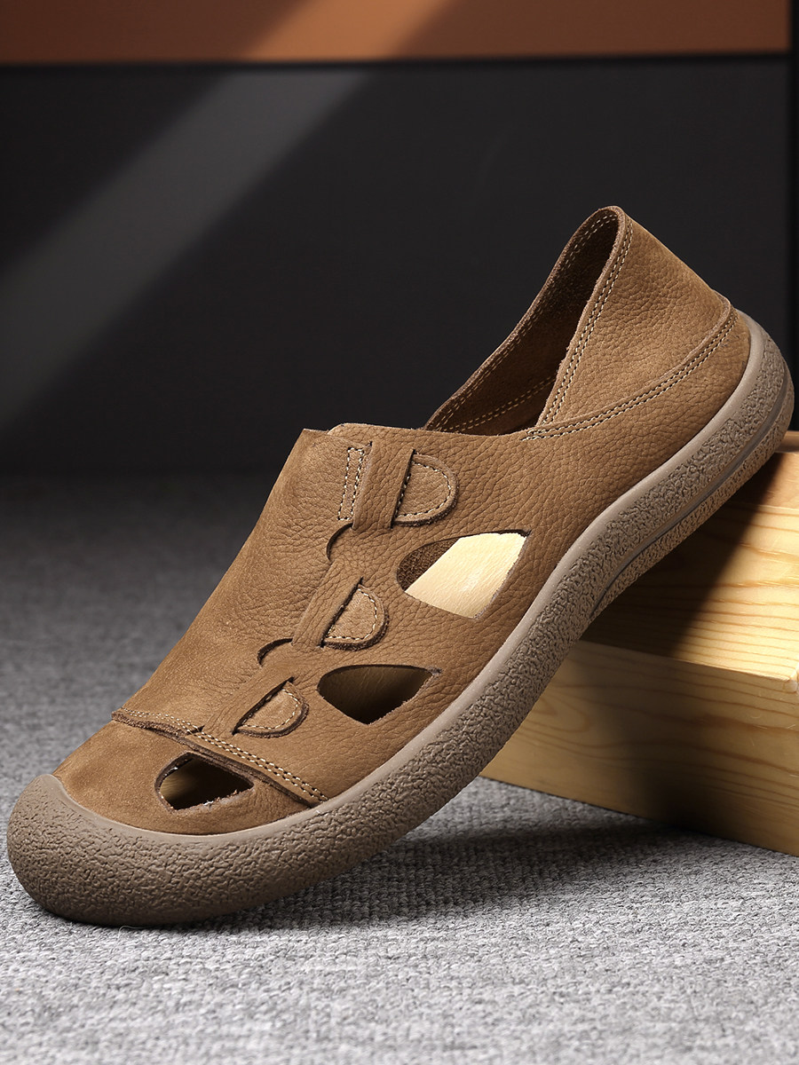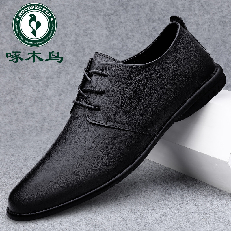 Woodpecker Single-Layer Leather Shoes for Men 2025 Spring and Summer New Style Breathable Cut Out Men's Casual Soft Leather Soft Sole Wedding Shoes