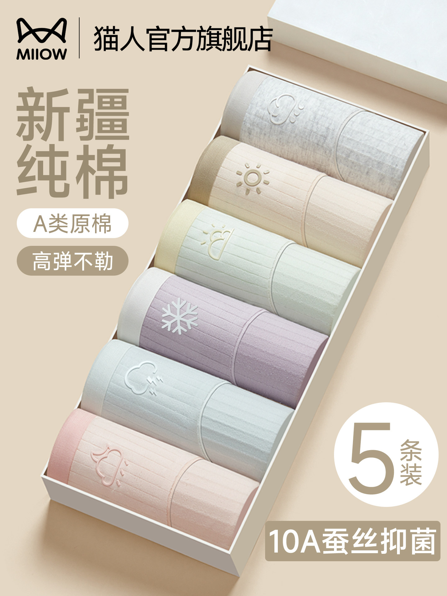Catman Seamless Underwear for Women, Pure Cotton Antibacterial Silk Crotch, 2025 New Model, Mid-Waist, Non-Pinching Triangle Briefs for Young Girls