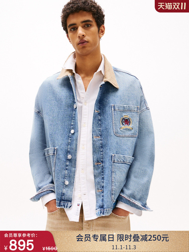 Tommy25 Spring and Summer New Style Men's and Women's American Retro Workwear Style Contrasting Color Lapel Loose Detroit Denim Jacket