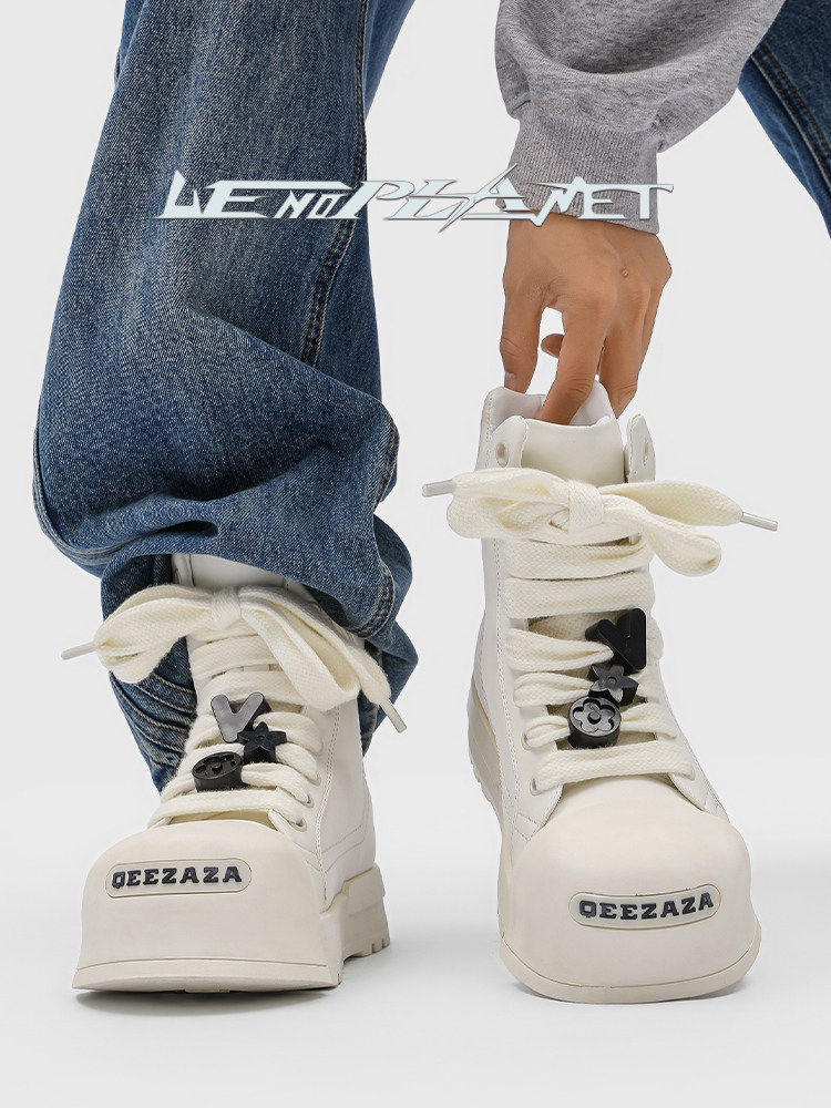 Cos Style White Sneakers with Hidden Height Increase for Men, 10cm Invisible Thick Sole, Height Increase of 12cm, Korean Style Trendy Sports Casual Shoes