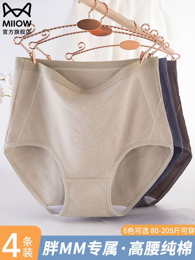 Catman Women's Underwear, Pure Cotton, Antibacterial, High-Waisted, Plus Size, Large Size 100kg Extra Large, Middle-Aged and Elderly Mothers' Triangle Briefs