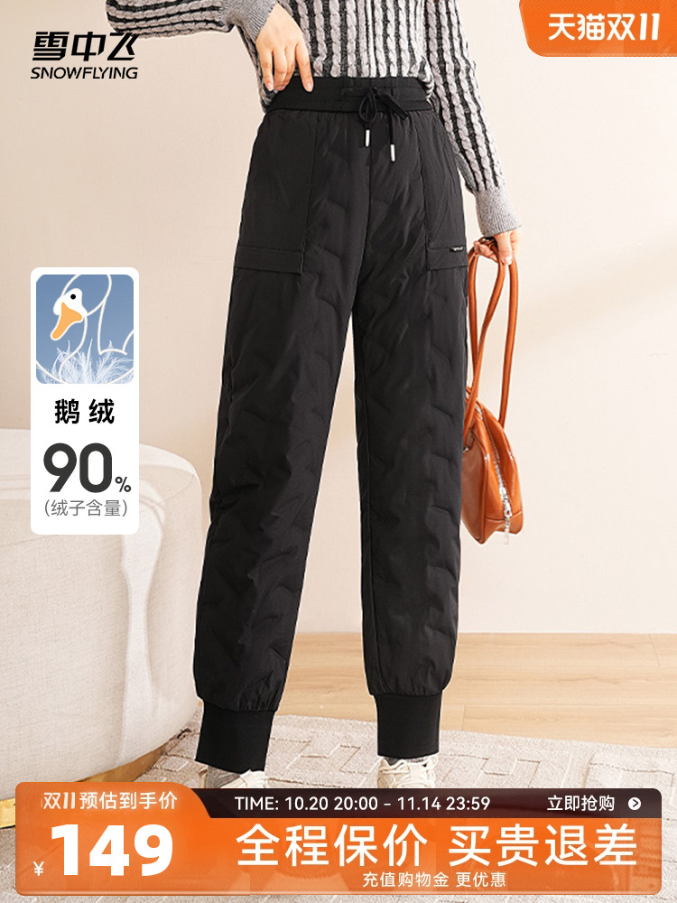 Xuezhongfei 2025 Spring and Autumn New Women's Goose down Pants High Waist Drawstring Fashionable Warm Cold-Resistant Thickened