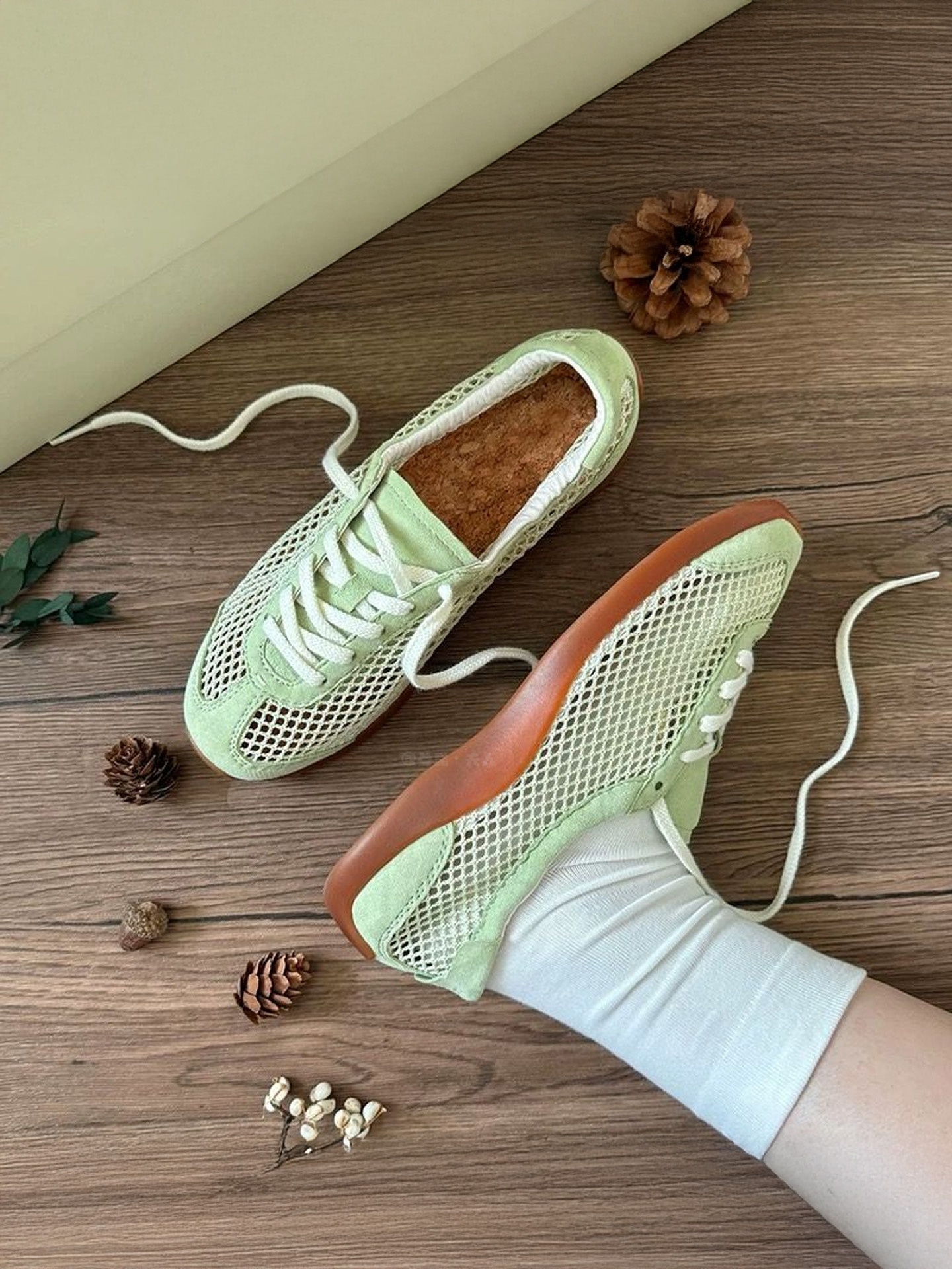 Sanli Genuine Leather Lace-Up Ballet Shoes for Women 2025 Summer New Casual Mesh Breathable Flat-Soled German Training Shoes Forrest Gump Shoes