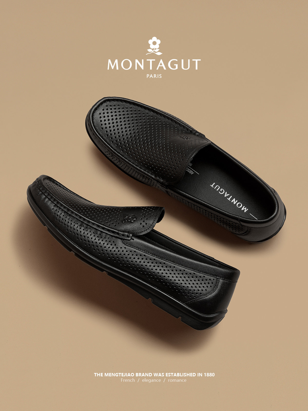 Montagut Perforated Leather Shoes, Soft Genuine Leather Hollow-Out Men's Slip-On Shoes, Middle-Aged Business Casual Shoes, Breathable for Winter