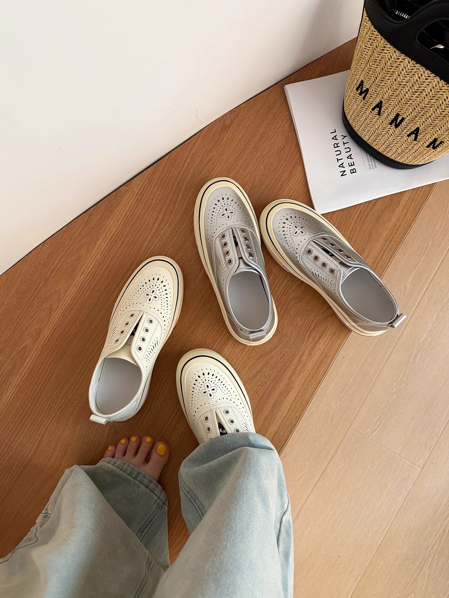 Hong Kong Breathable Hollow Slip-On Thick-Soled White Shoes for Women 2025 Summer New Small Casual Easiest for Match Sneakers