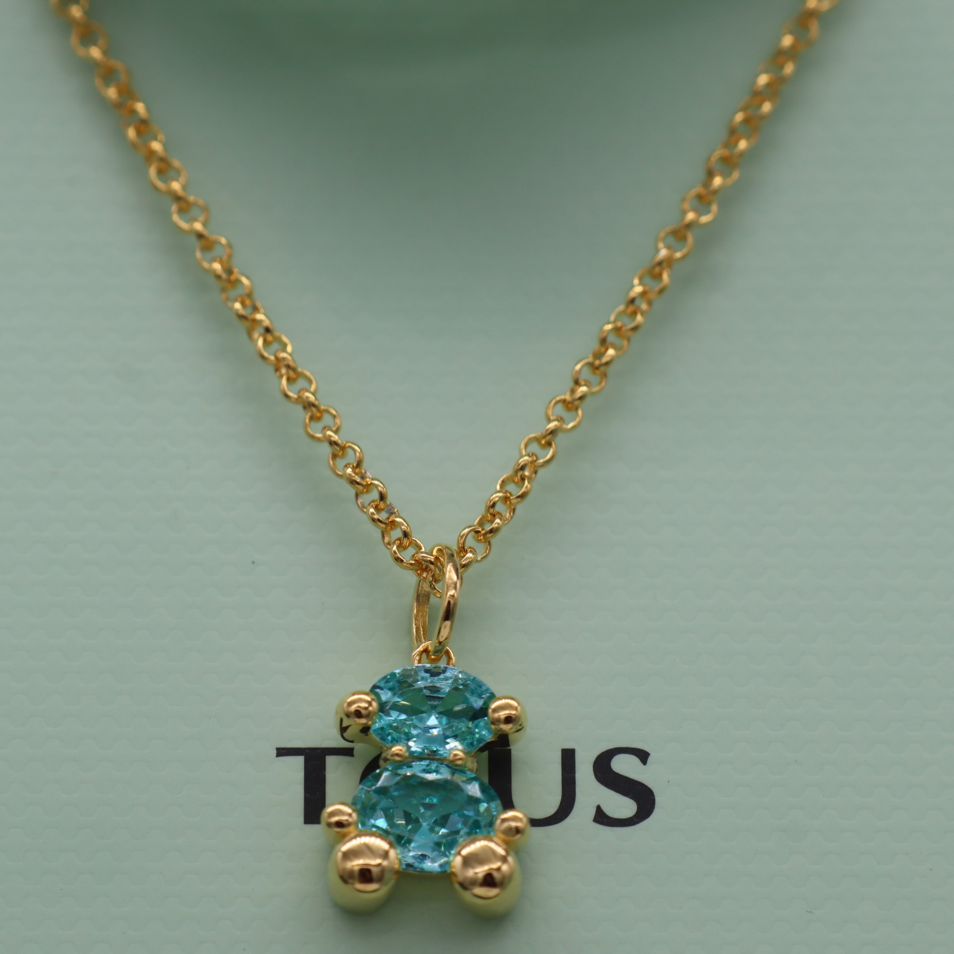 Casual Bear New Style 925 Sterling Silver Gold-Plated Necklace with Sky Blue Oval-Shaped Stone Bear Necklace, Elegant and Fashionable