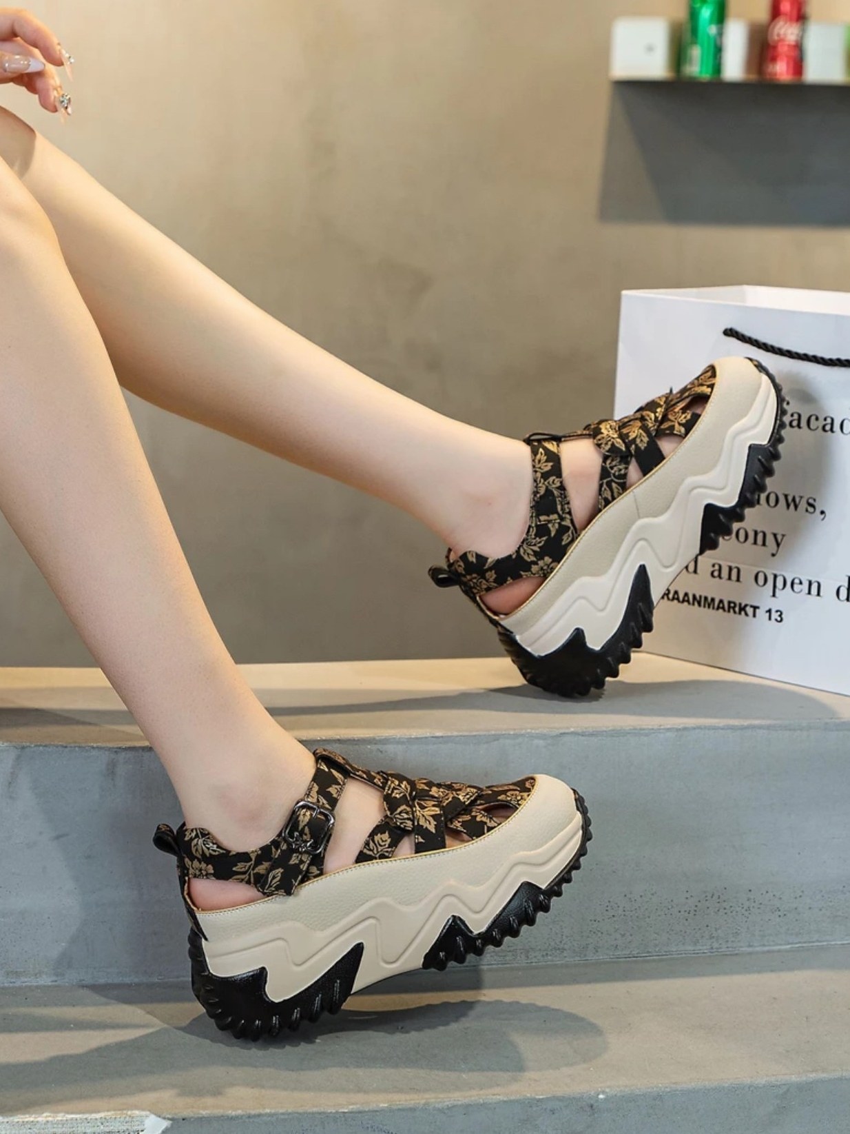 Women's Height-Increasing Sandals 2025 New Summer Genuine Leather Closed-Toe Clogs Thick-Soled Sports Wedge Platform Roman Sandals