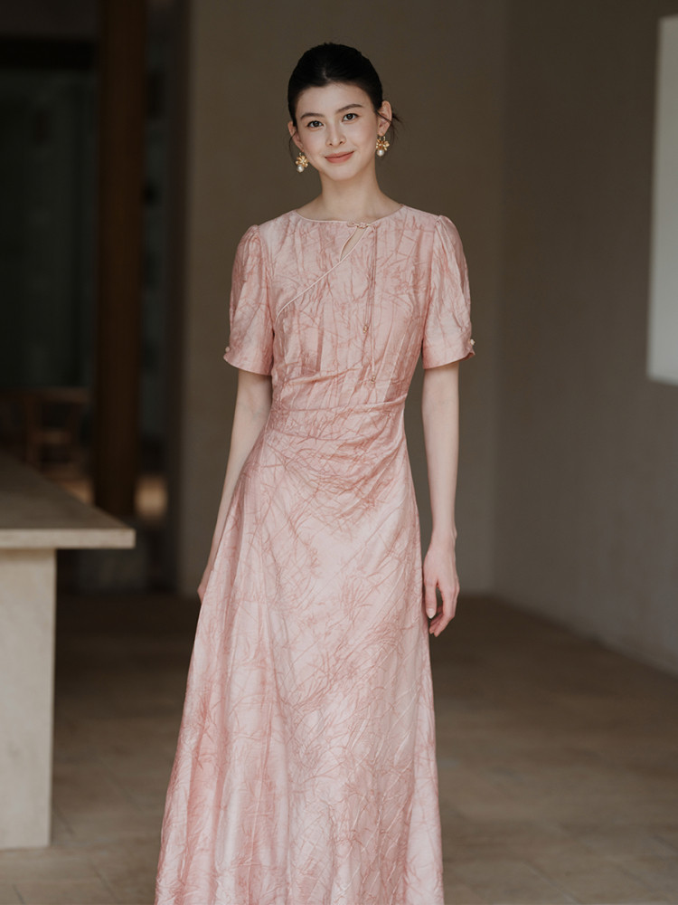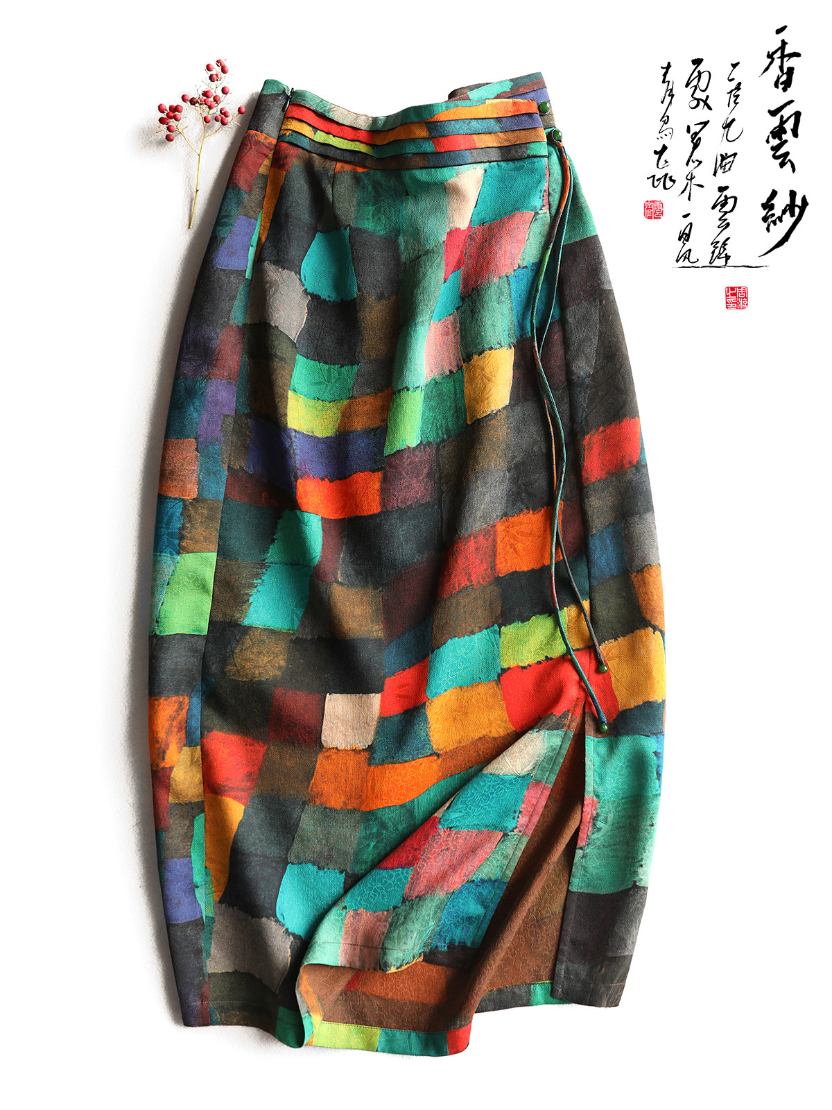 Yunshu Original Floral Silk Skirt, New Chinese Style Half-Length Skirt, Mulberry Silk Plaid Print Pencil Skirt for Summer