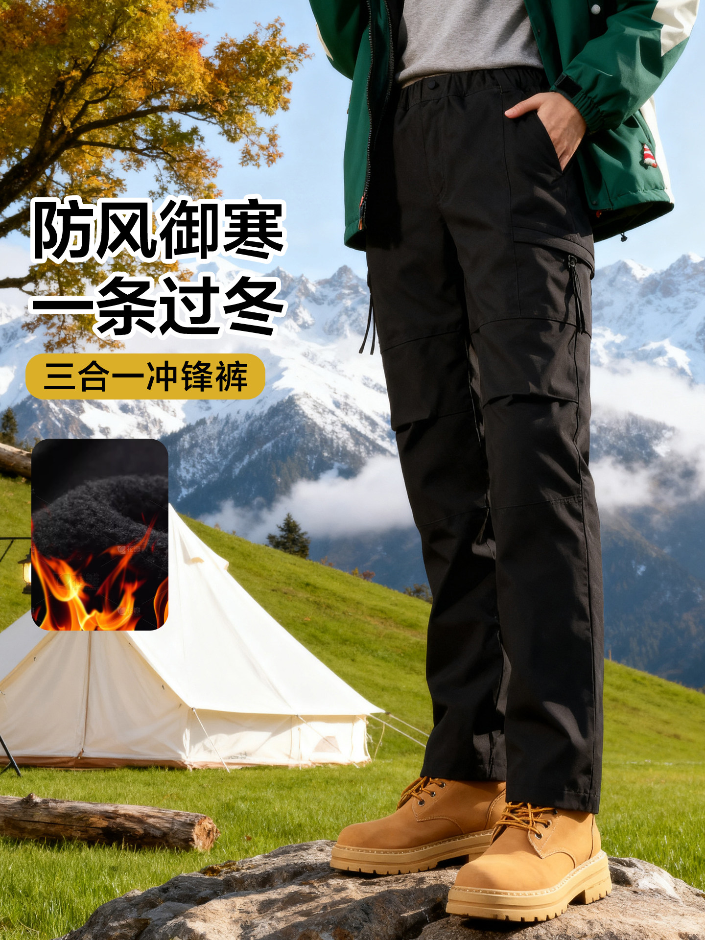 Mountain-Style Assault Pants for Men and Women, Outdoor Two-Piece Set, Detachable Casual Autumn and Winter Work Pants, Waterproof and Windproof Ski Pants