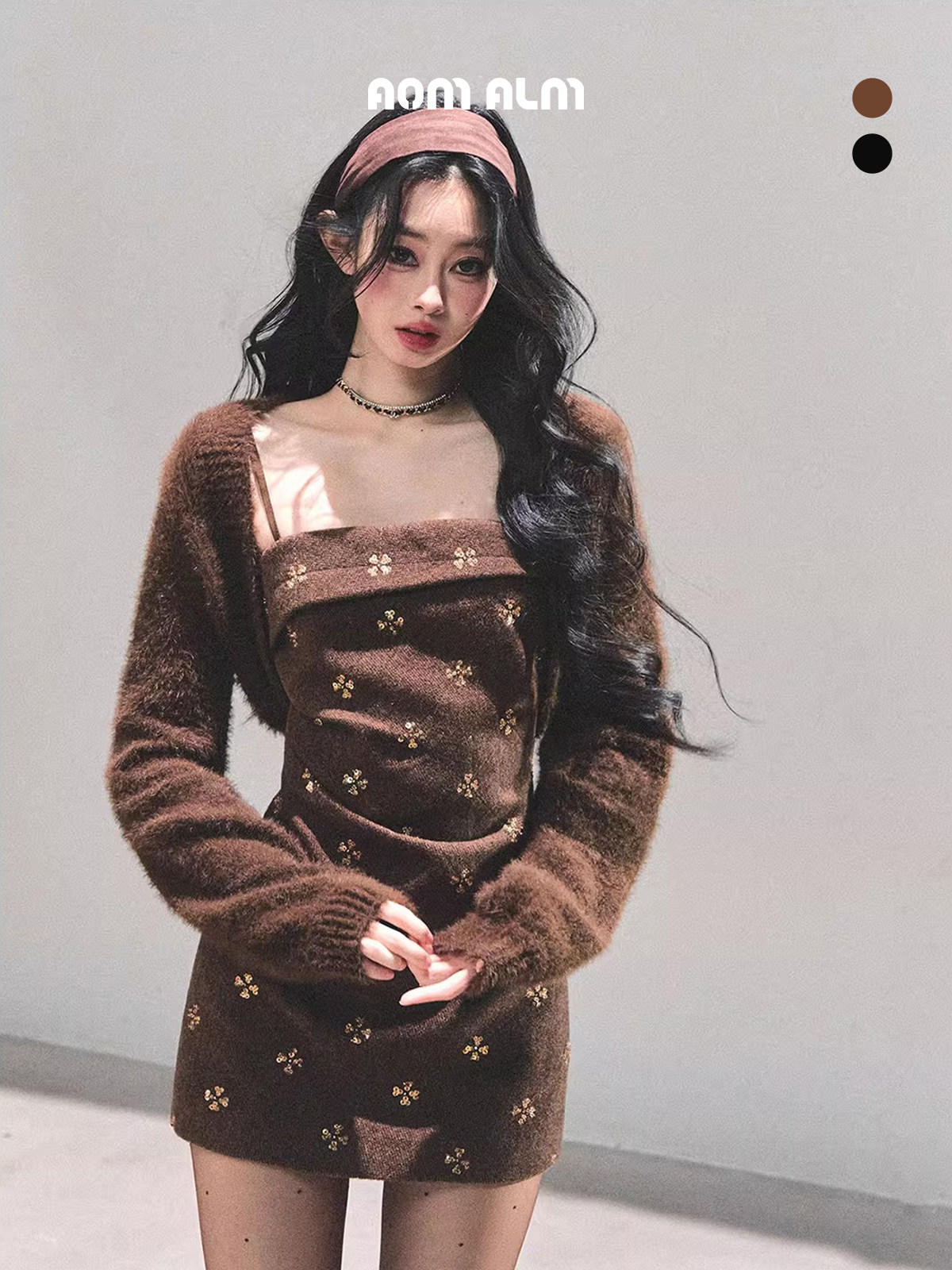 Aomalm Little Flower Girl's "Begonia Blossoms Don'T Sleep"% French-Style Wool Slip Dress for Women, Winter Bodycon Mini Dress