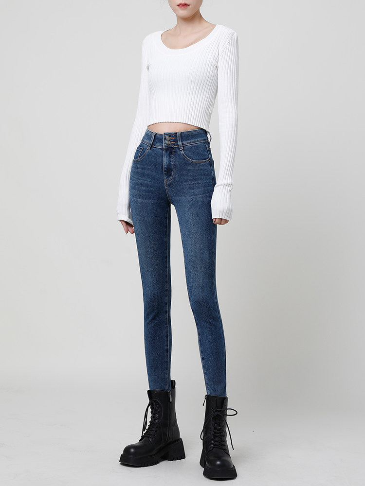 High-Waisted Skinny Jeans for Women, 2025 Autumn and Winter New Style, Stretchy Slim-Fit Pants, Slimming Fleece-Lined Pencil Pants