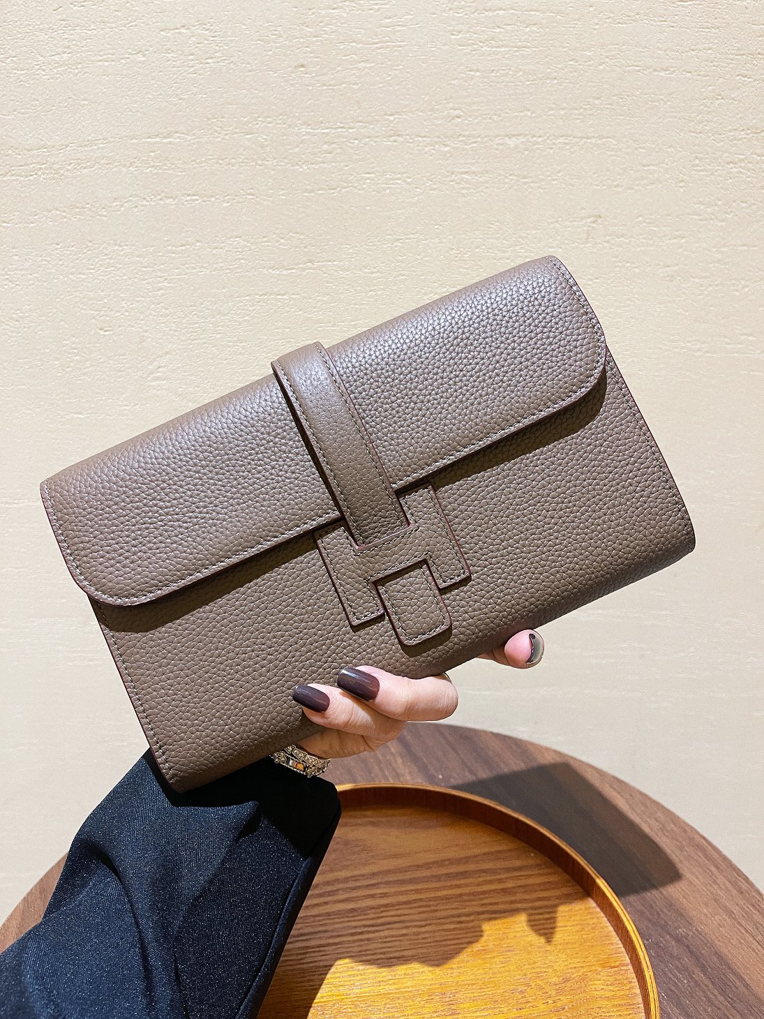 Genuine Leather H Clutch Bag, Classic Drawstring Phone Bag, Evening Bag, Large Capacity Card and Document Passport Storage Bag, Underarm Bag