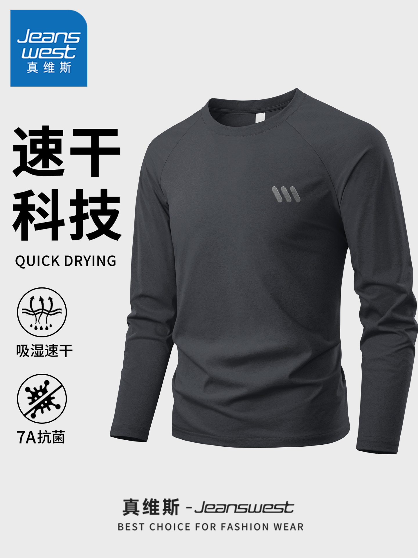 Jeanswest Quick-Drying Men's Long-Sleeve T-Shirt 2025 New Model Mountaineering Sports Cycling Shirt Men's Base Layer Thin Style Q
