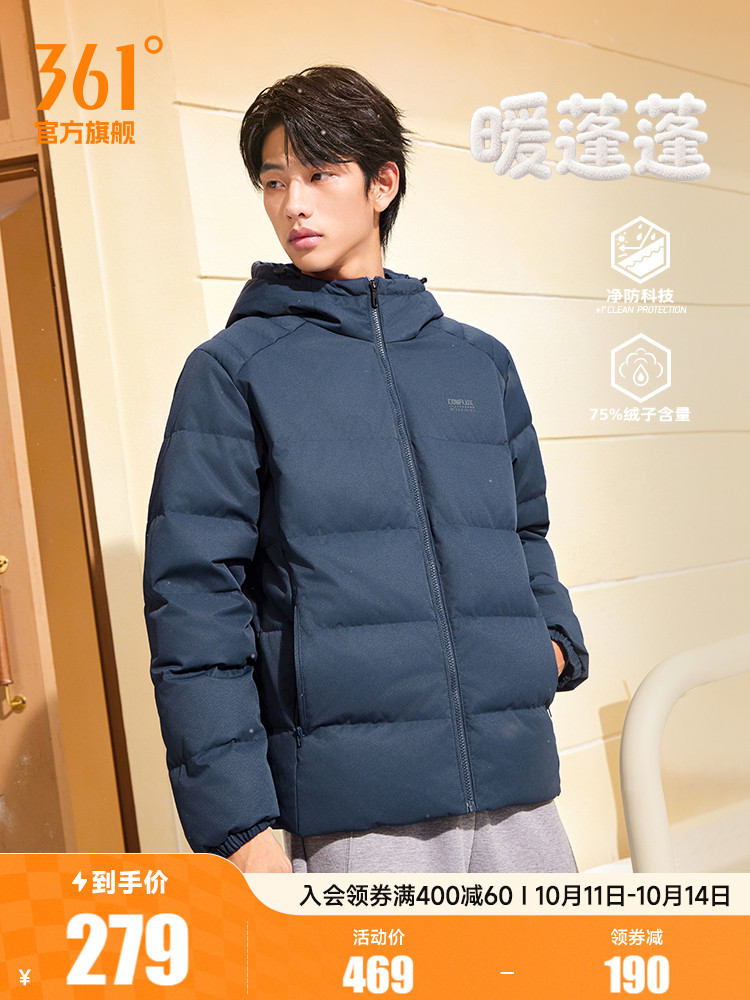 361 Men's down Jacket 2025 Winter Men's Hooded Thickened Warm Short down Jacket Three-Proof Coat for Men