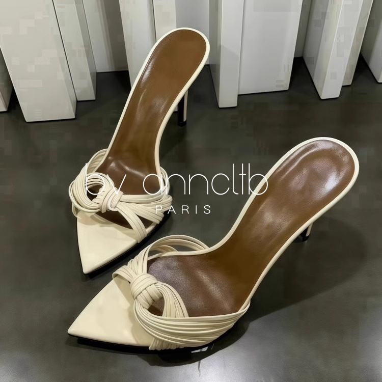 Bv Anncltb Pointed Toe High Heels Stiletto Half Slippers Feminine Thin Strap Woven Strap Sandals for Women