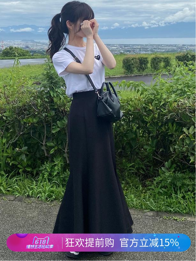 Grl Japanese Style Saito Ena Versatile All-Season Elastic High-Waisted Slimming Back Slit Solid Color Fishtail Skirt Dk988