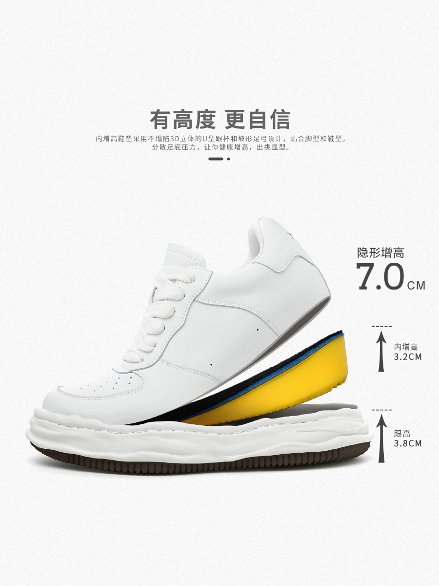 Xjxy [7cm Height Increasing Shoes] Men's Autumn Shoes 2025 New Trendy Casual Shoes Breathable Shoes White Shoes