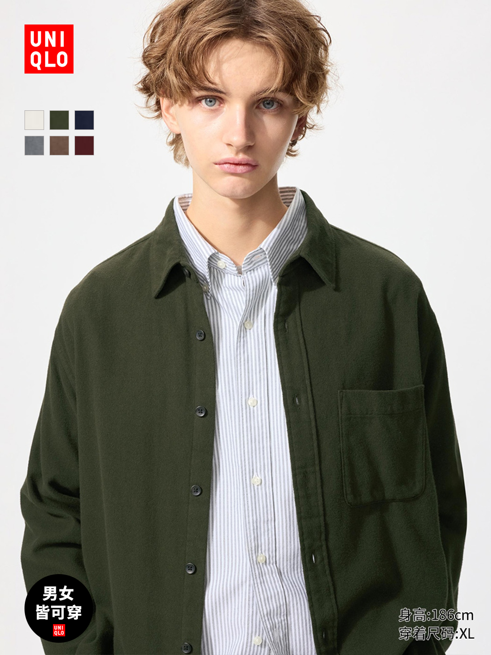 UNIQLO men's and women's flannel shirt Long sleeves shirt pure cotton thin coat 25 New arrival 478118 480773