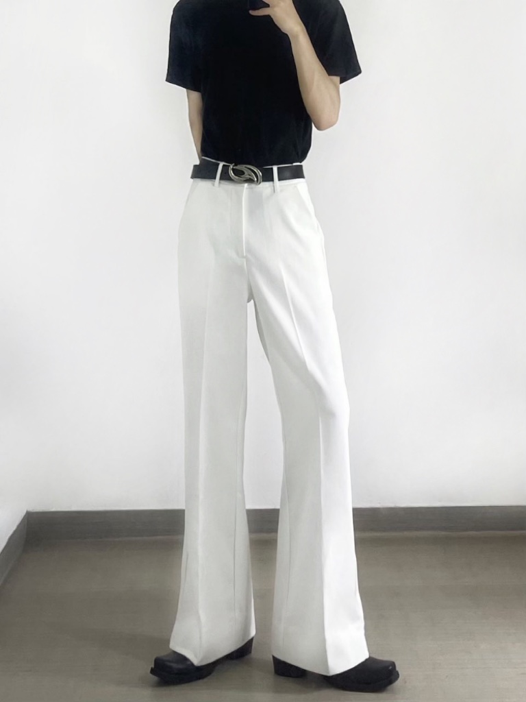 Fengligu/High-Street Vibe Style, Drapey Slit Flared Trousers for Men, High-End Stacked Floor-Length Pants