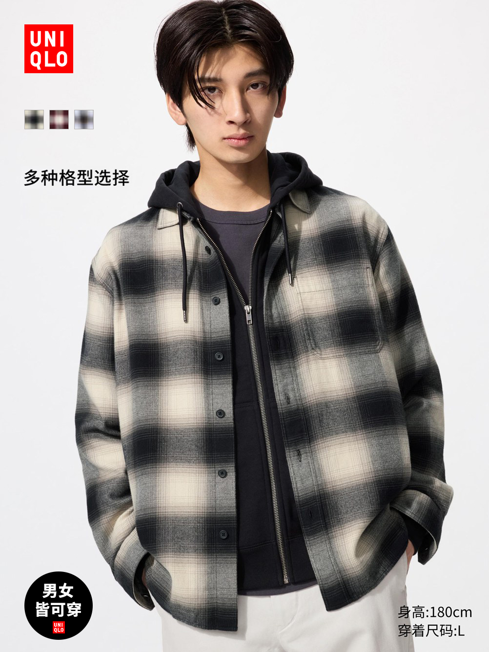 UNIQLO men's and women's flannel Gingham shirt Long sleeves shirt thin coat 25 Fall and winter 481224 480767