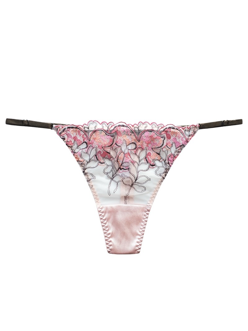 Thin Strap Sexy Thong for Women, Seamless One-Line Autumn and Winter Panties, Mulberry Silk Low-Waist Transparent Lace Underwear